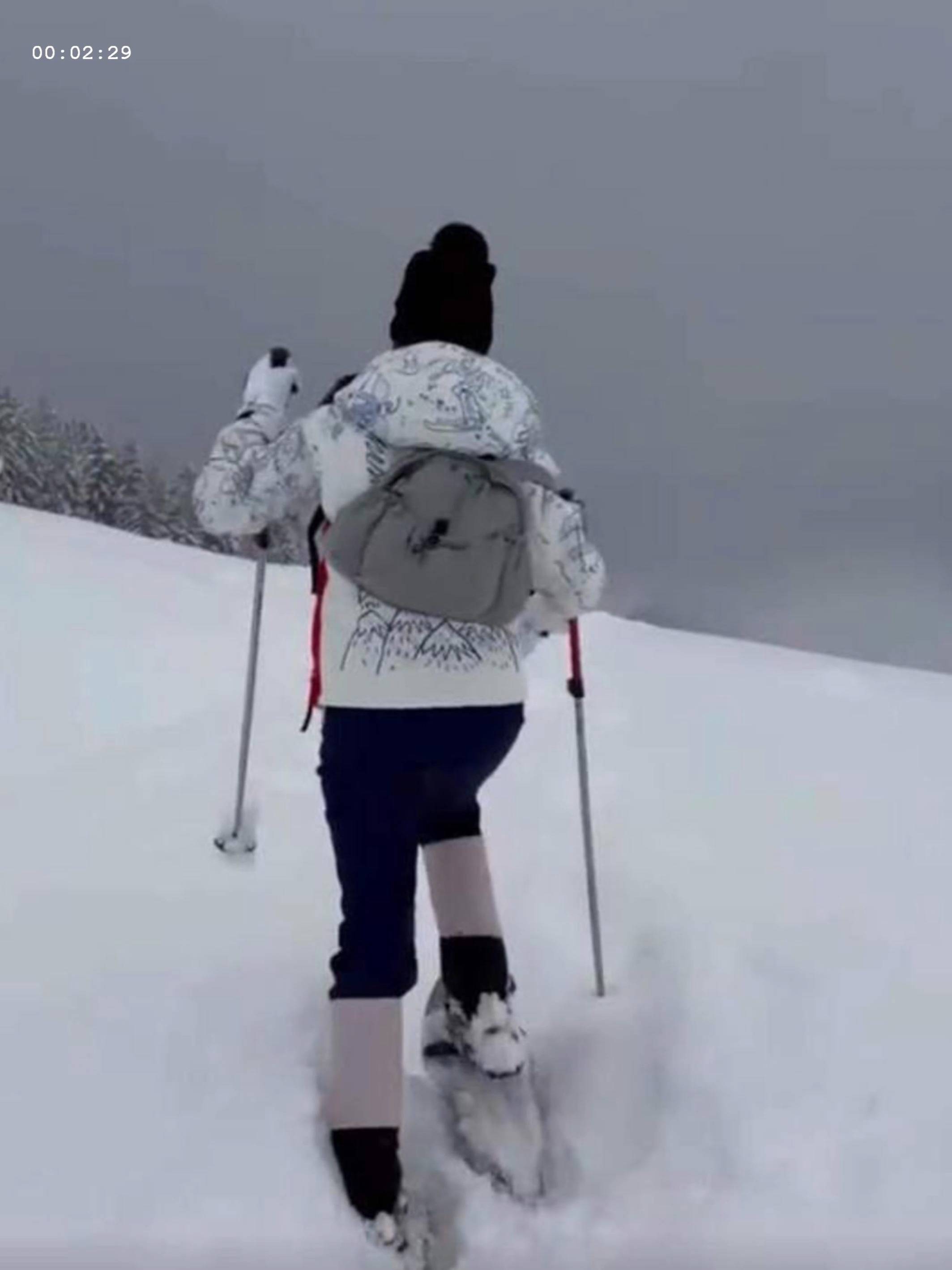 更让人意外的是她春节假期的雪山徒步。穿着专业雪服深一脚浅一脚踩在齐膝积雪里,黑色裤子裹着纤细却有力的小腿,侧脸轮廓在雪地反光里格外清晰。要知道半年前她去不丹徒步还被骂“豪门作秀”,如今却能和中国速登珠峰纪录保持者曾燕红一起登山,连播客里都说:“那些你真正热爱的事,必须全力以赴。”从被群嘲“只会附和刘嘉玲”到现在靠《小天章》播客圈粉,这个曾经活在丈夫光环下的女性,正在用登山杖和画笔,一步步走出自己的路。
